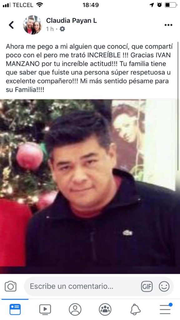 Pasadas las 7:00 de la tarde, a través de la cuenta de Twitter, informó sobre el deceso de otro juarense, Iván Filiberto Manzano.