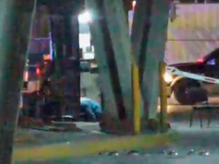 La víctima quedó tendida junto a una camioneta tras recibir un impacto de arma de fuego; dos hombres en una motocicleta azul serían los responsables