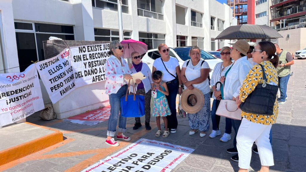 Deudos de crematorio se plantan afuera de Ciudad Judicial contra Michelle Gloria Rodarte, a quien señalan porque permitió incinerar cuerpos de víctimas de delitos
