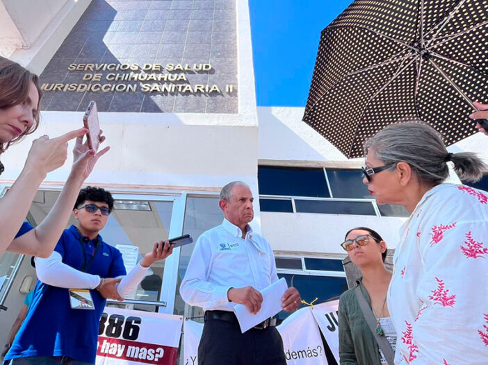 En el exterior de la oficina de Servicios de Salud de Gobierno del Estado, sobre el Paseo Triunfo de la República, un grupo de posibles familiares de personas cuyos cuerpos fueron hacinados en una bodega del crematorio Plenitud, realizaron una protesta y confrontaron al director de la dependencia, Rogelio Covarrubias.