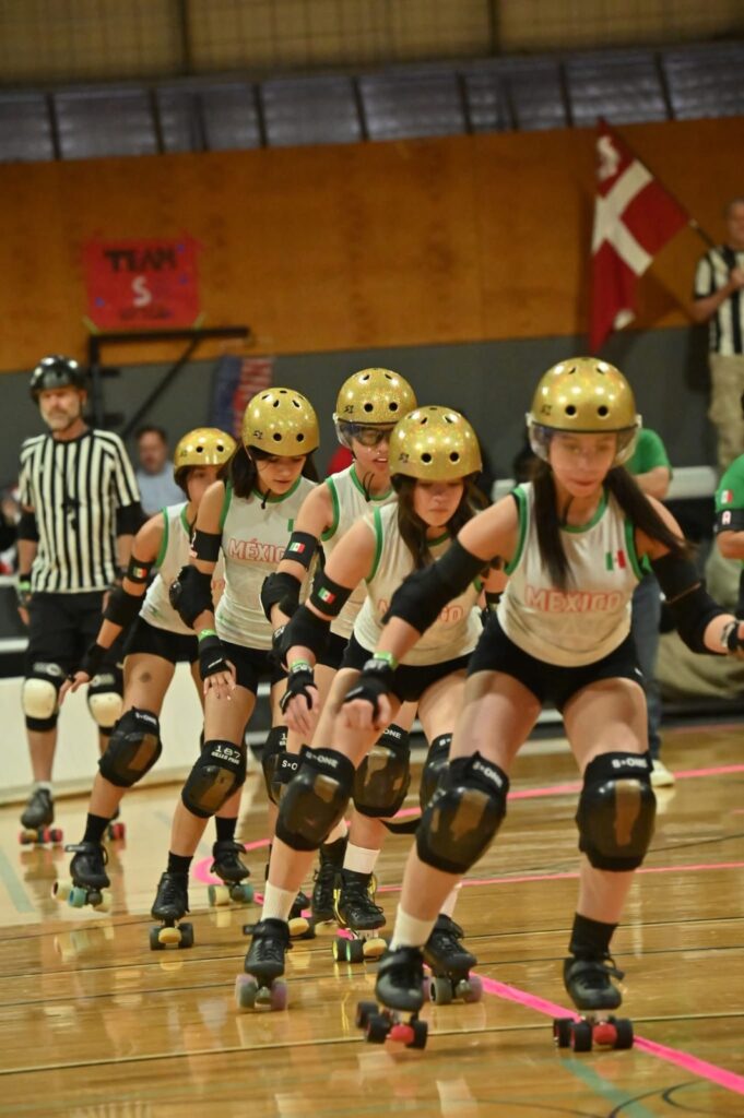 El Team México Roller Derby Junior, integrado por Steel Bee, Angie, Bella, Ale, Rocker Flower, Lizaster, Bridge Breaker, Miko, Crazy Cow y Jaky además de las coaches Janeth Hernández y Cat-A-Tac, concretaron la hazaña de ser el primer equipo latinoamericano compitiendo en la categoría junior, todas las patinadoras, juarenses orgullosamente.