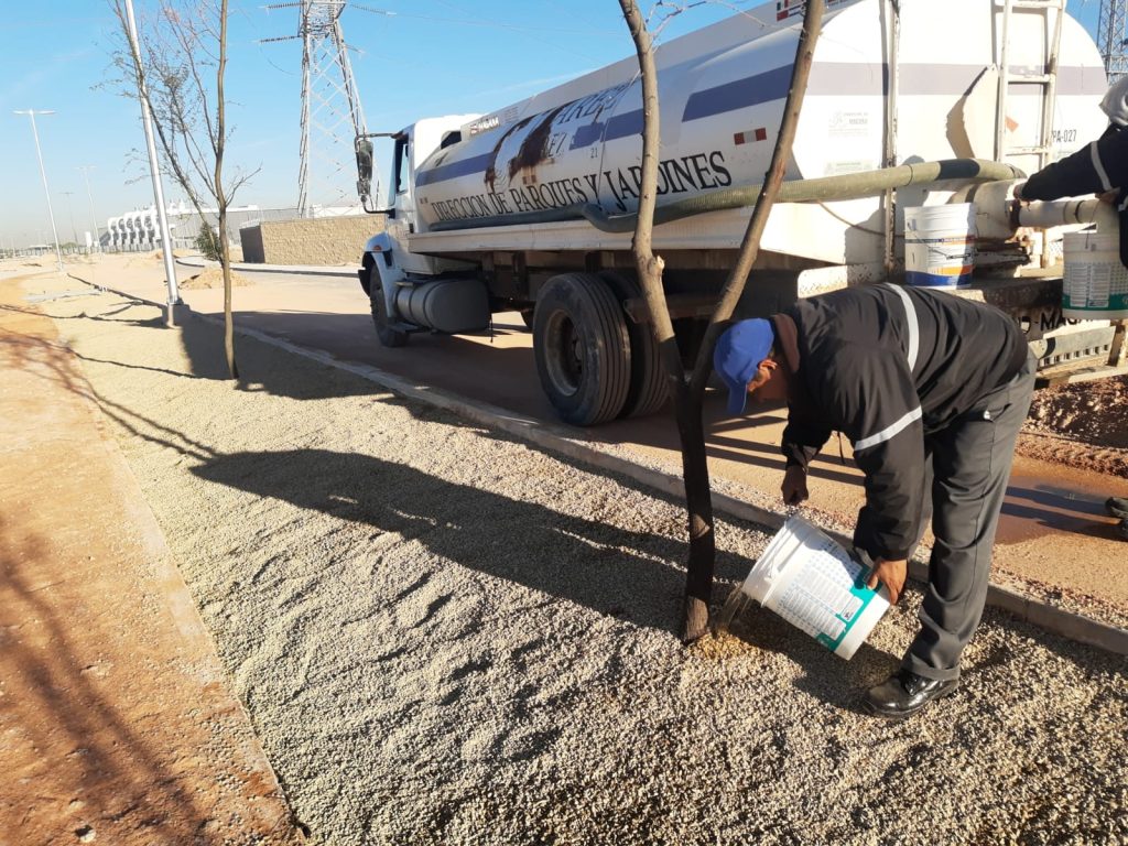Por esta razón, personal operativo de la Dirección de Parques y Jardines trabajó en la plantación de 50 de árboles de diferentes especies en el parque lineal, ubicado en la prolongación de la avenida Tomás Fernández y Francisco Villarreal Torres.