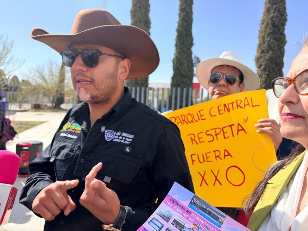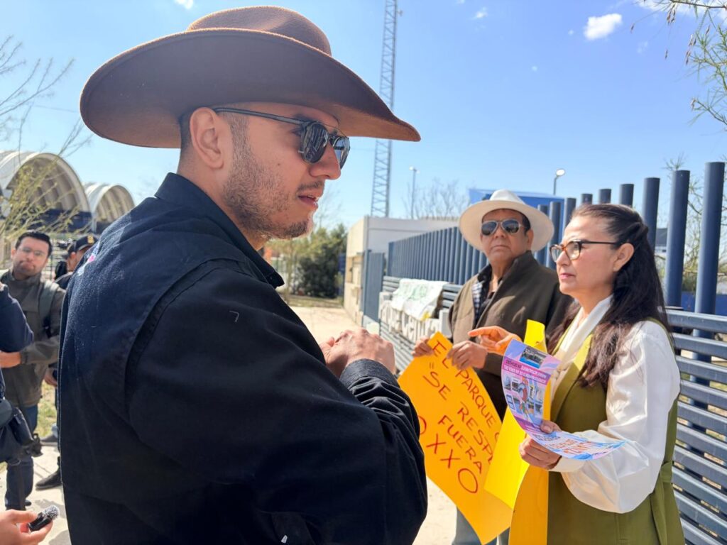 Poco tiempo después que llegaron los manifestantes a la esquina del bulevar Teófilo Borunda y calle De las Parcelas, lugar donde desde hace cuatro años se encuentra construido el edificio que ocuparía la tienda de conveniencia de la cadena Oxxo, el coordinador del Parque Central, Rafael Butchart, salió a escuchar a los inconformes.