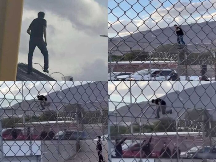La escena sorprendió ayer a los fronterizos de Juárez-El Paso, ya que a pesar de las advertencias para que descendiera, dicha persona se negaba y continuaba avanzando.