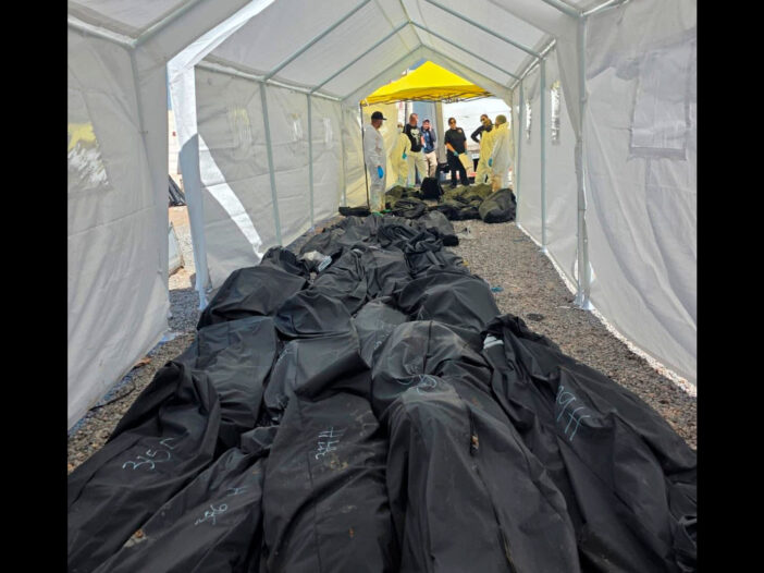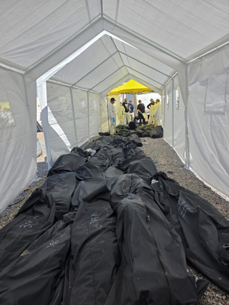 “Lo primero es darle la dignidad a estos cuerpos que encontramos, estamos poniéndolos en un lugar refrigerado, en bolsas, para ya posteriormente, pasar a la identificación y ya darles el destino que los familiares quieran darles”, mencionó.