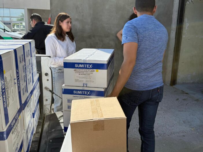 Los insumos entregados fueron 10 mil 500 piezas de catéter para venoclisis de poliuretano, 17 mil de catéter intravenoso periférico para venoclisis, 440 batas desechables, 180 unidades de vendaje no látex foam bandage y 66 de jabón antimicrobiano al 2%.