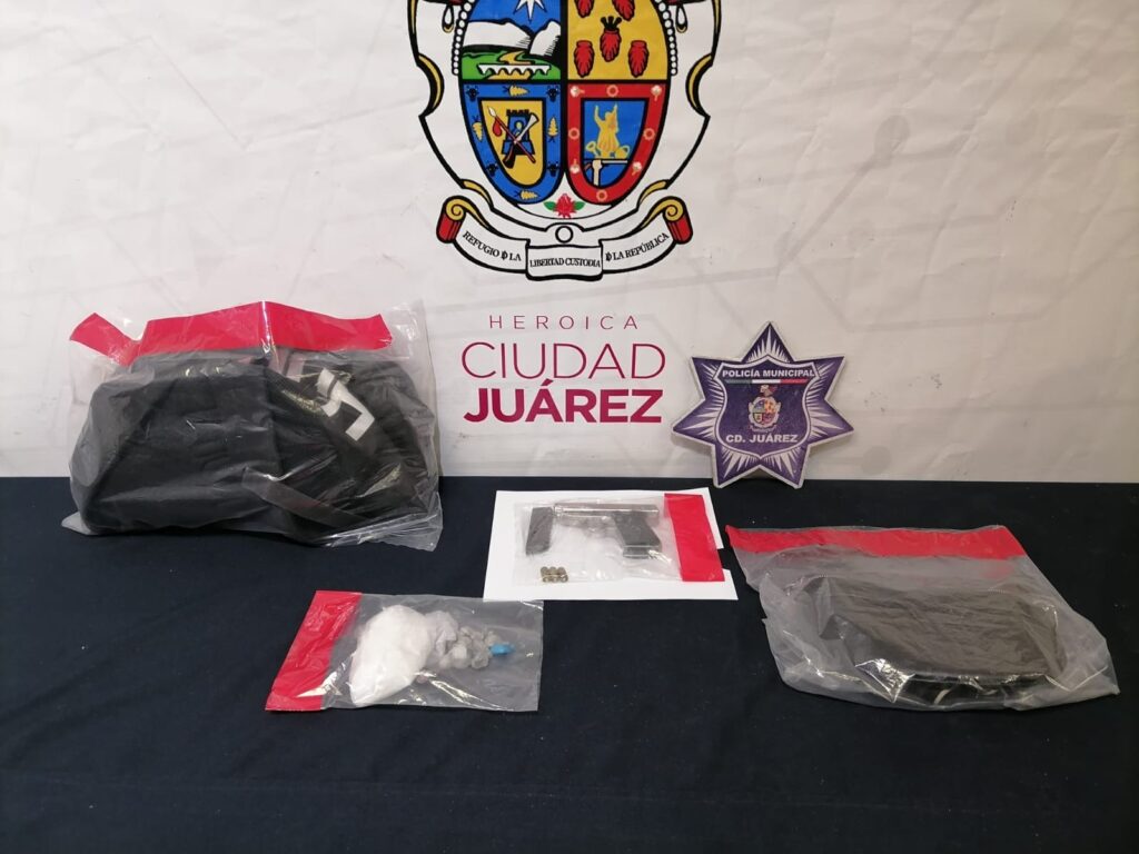 La mujer portaba un arma de fuego calibre .380 con un cargador abastecido con tres cartuchos útiles, la cual traía oculta adentro de una bolsa tipo cangurera.