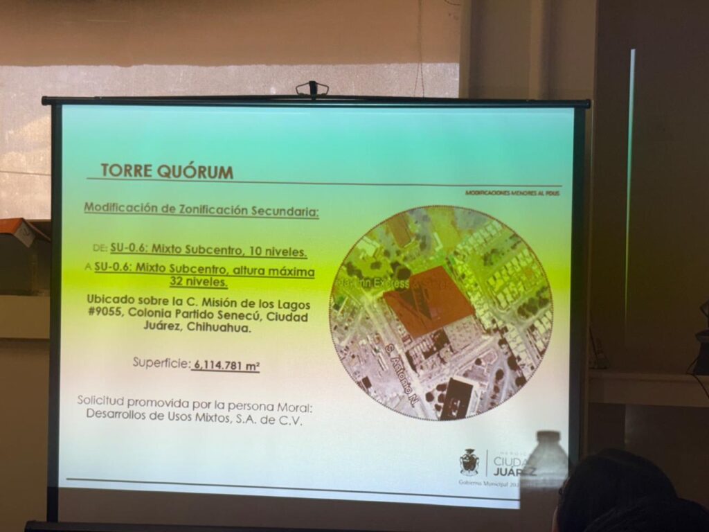 La preautorización del incremento —que convertiría al edificio en el más alto en la historia de Ciudad Juárez— fue cuestionada por Claudia Arreola, del área de Participación Ciudadana del Plan Estratégico de Juárez A.C.