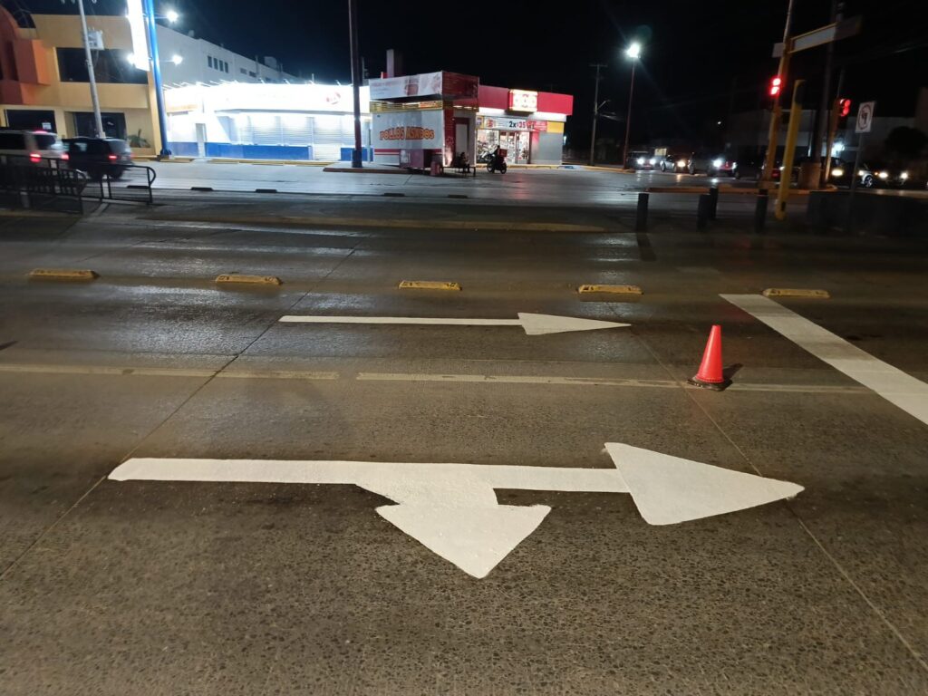 Durante la noche, trabajadores municipales se están dedicando al pintado de flechas, líneas de frenado, paso peatonal y otros señalamientos viales en distintas calles y avenidas de la ciudad, dio a conocer personal de Control de Tráfico de la Coordinación General de Seguridad Vial (CGSV).