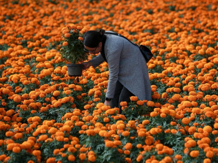 “Esto quiere decir que nuestra tradición mexicana se está recuperando en esta parte de la frontera”, afirma Guadalupe, originaria del estado de Morelos, mientras muestra con orgullo las miles de flores de cempasúchil que tiñen de naranja su sembradío.