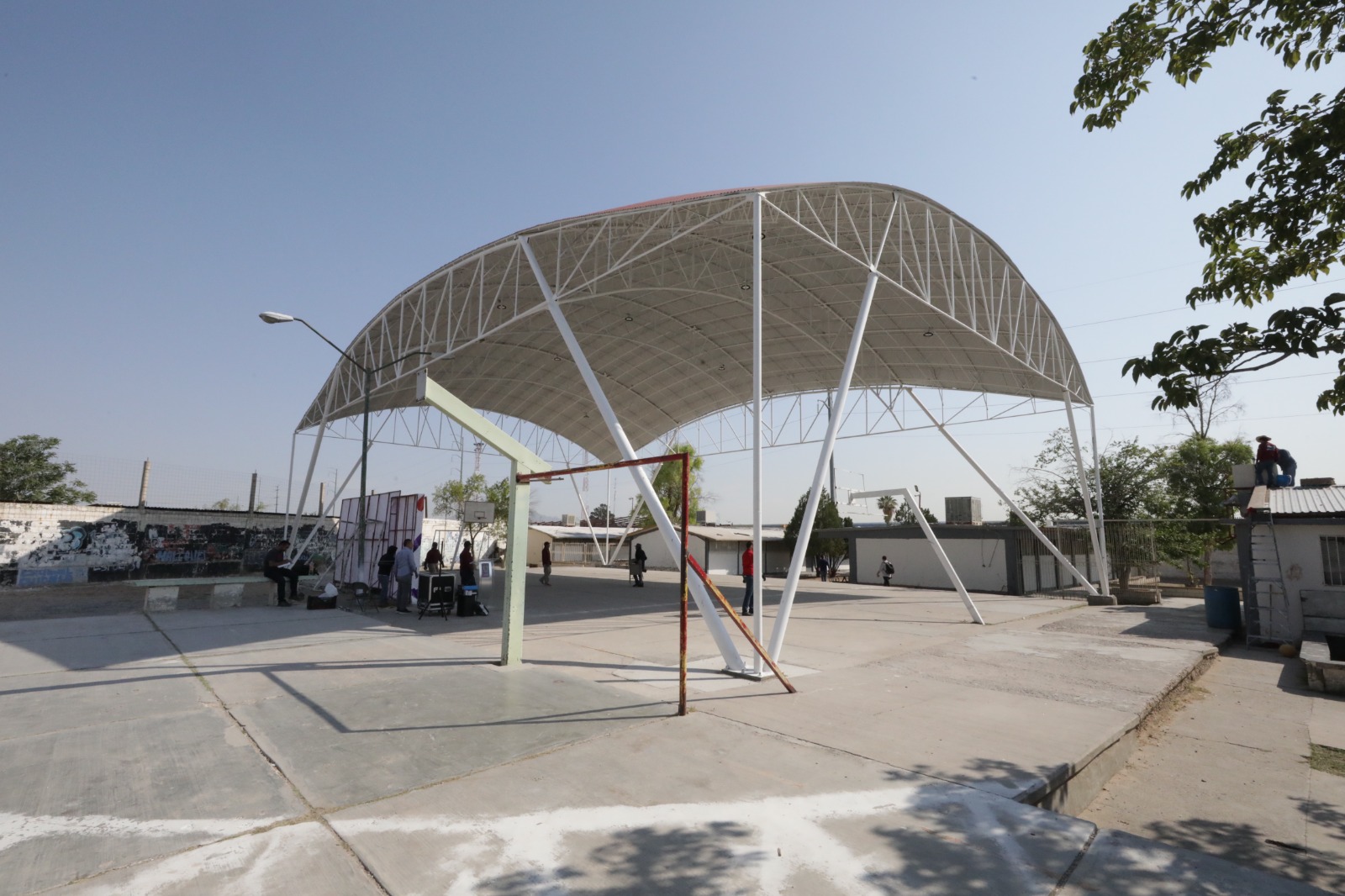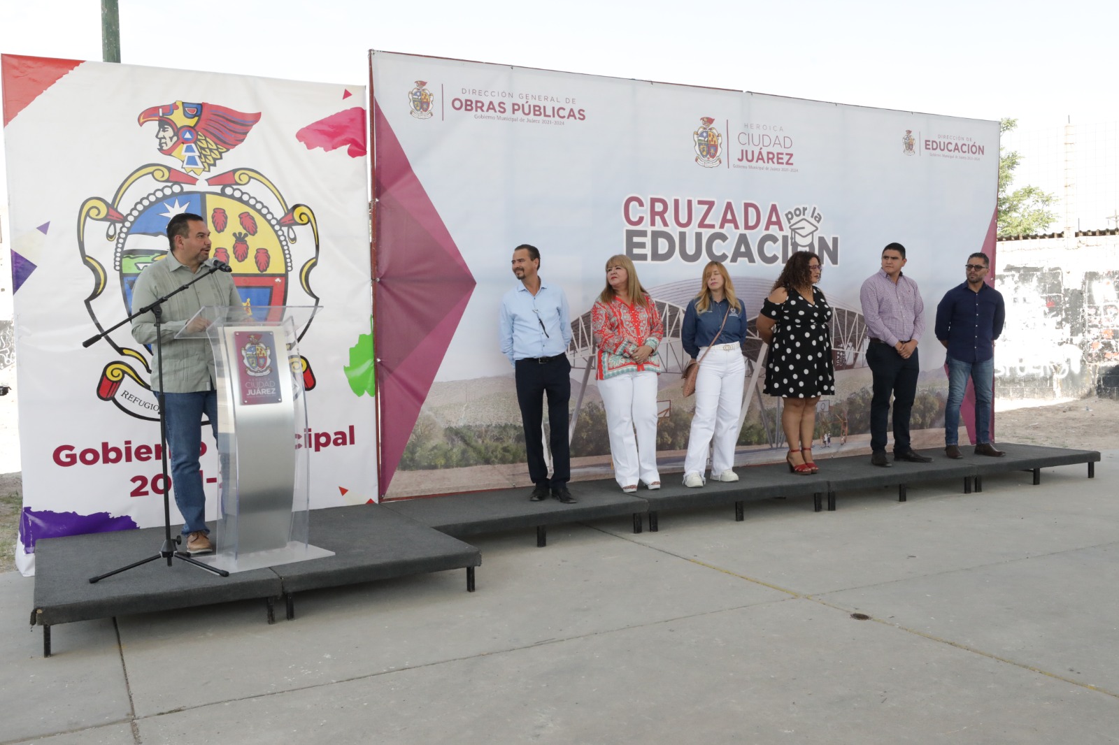 En la entrega del domo estuvieron la directora de Educación del Municipio, Martha Aracely González Holguín; los regidores Jorge Marcial Bueno y Ana Estrada; así como el director de Infraestructura Educativa, Ismael Rueda y el director de Edificación, Omar Esparza.