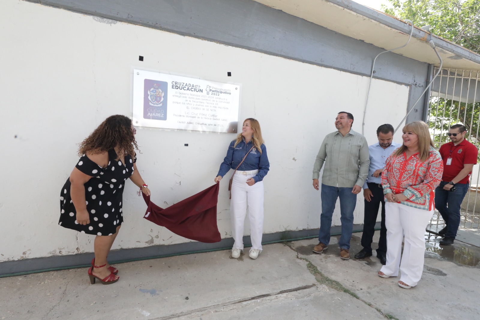 Al final del evento, las autoridades municipales y docentes de la escuela develaron una placa que permanecerá en las instalaciones del plantel.