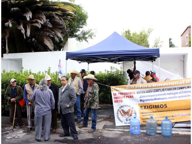 Decenas de integrantes de la Coordinadora Binacional de ex Braceros protestan ayer frente a la "casa blanca", en las Lomas de Chapultepec