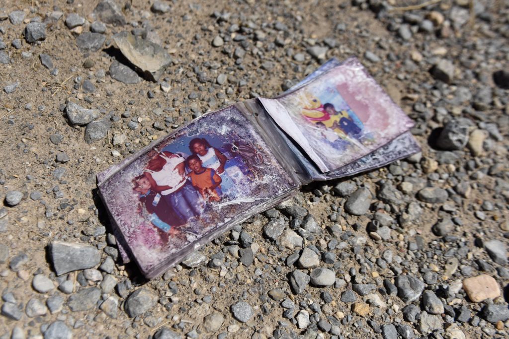 En un recorrido de Norte Digital, se observó que hay huaraches, tenis, pantalones, camisetas, suéteres, tarjetas bancarias, comprobantes de estudios, credenciales de empleos, boletos de transporte en camión, entre otros documentos.