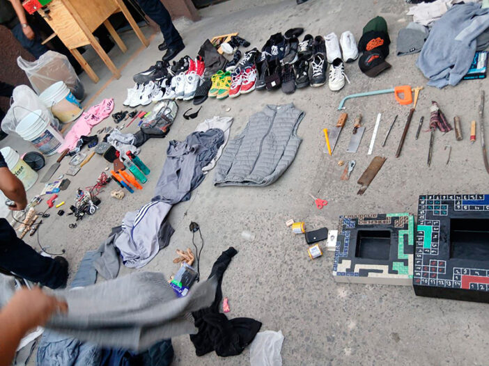 Entre lo asegurado, destacó la localización de una máquina de carpintería hechiza, elaborada con piezas de madera y herramientas de los talleres.