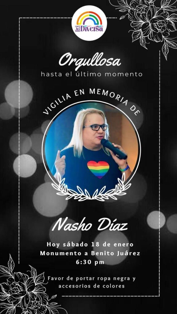 El Comité Juárez Diversa convocó a una vigilia en su memoria, este sábado 18 de enero a las 18:30 horas en el Monumento a Benito Juárez