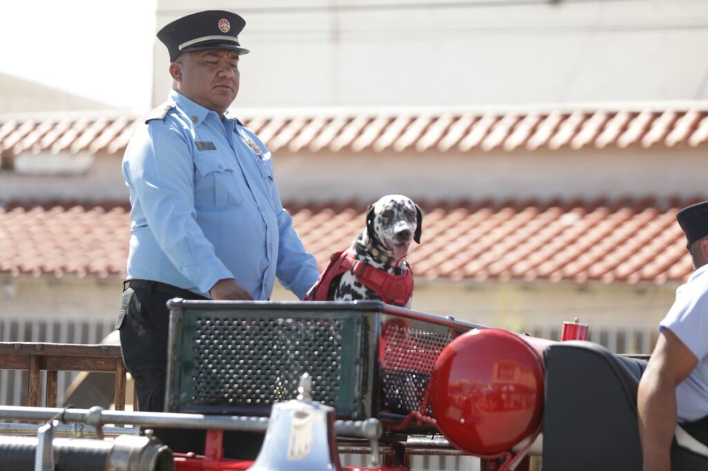 En el recorrido se vieron detalles diversos, desde un perro con botas protectoras, un vehículo de bomberos del siglo pasado y un joven ataviado como mascota con una botarga de la dirección de Ecología, hasta un motociclista que perdió el equilibrio, pero por fortuna pudo retomar el rumbo y seguir avanzando.