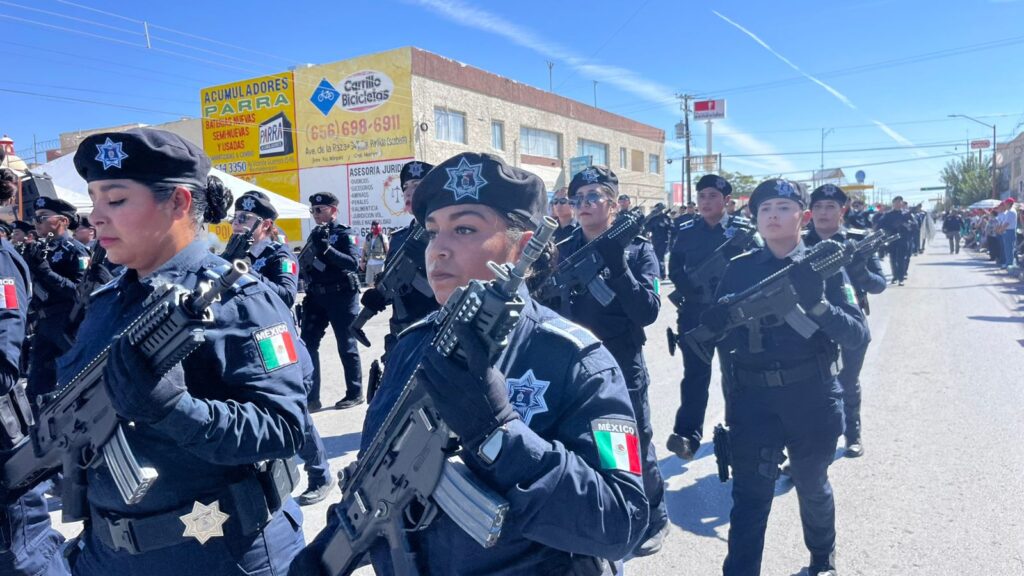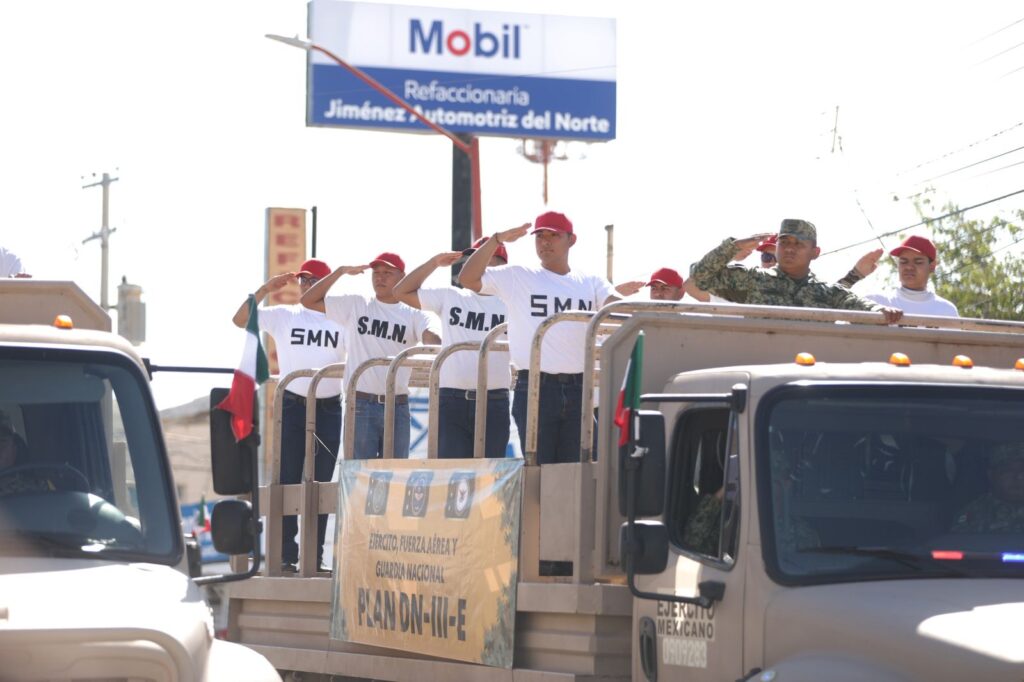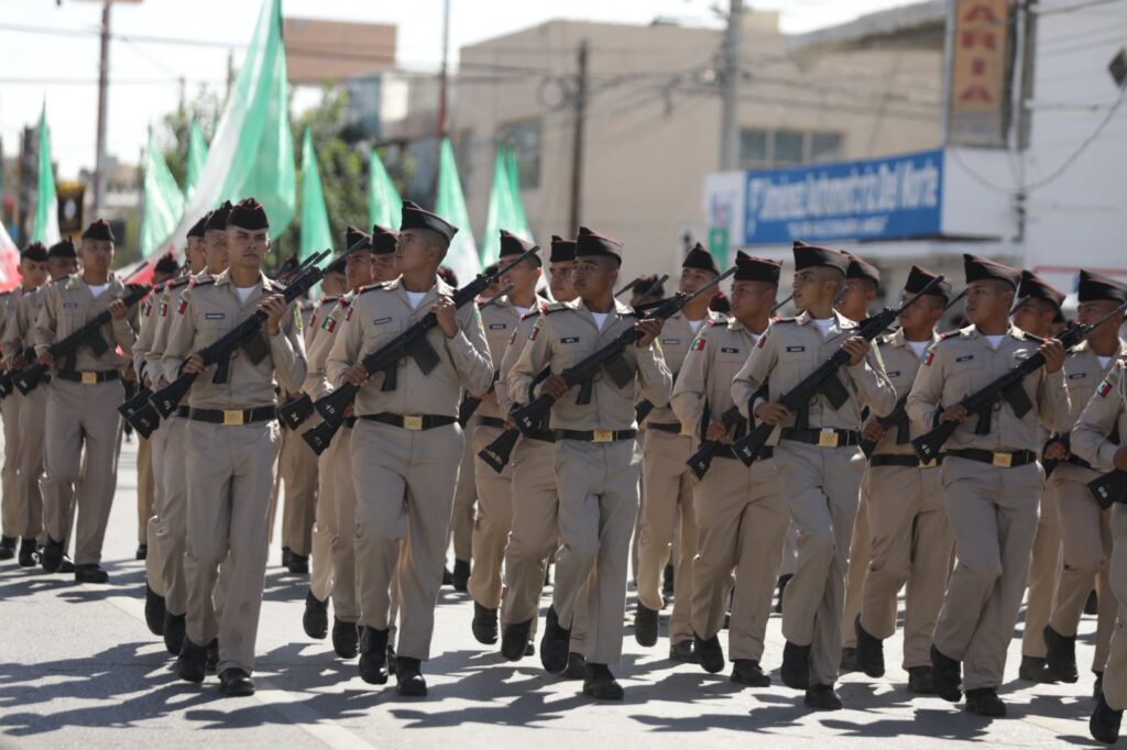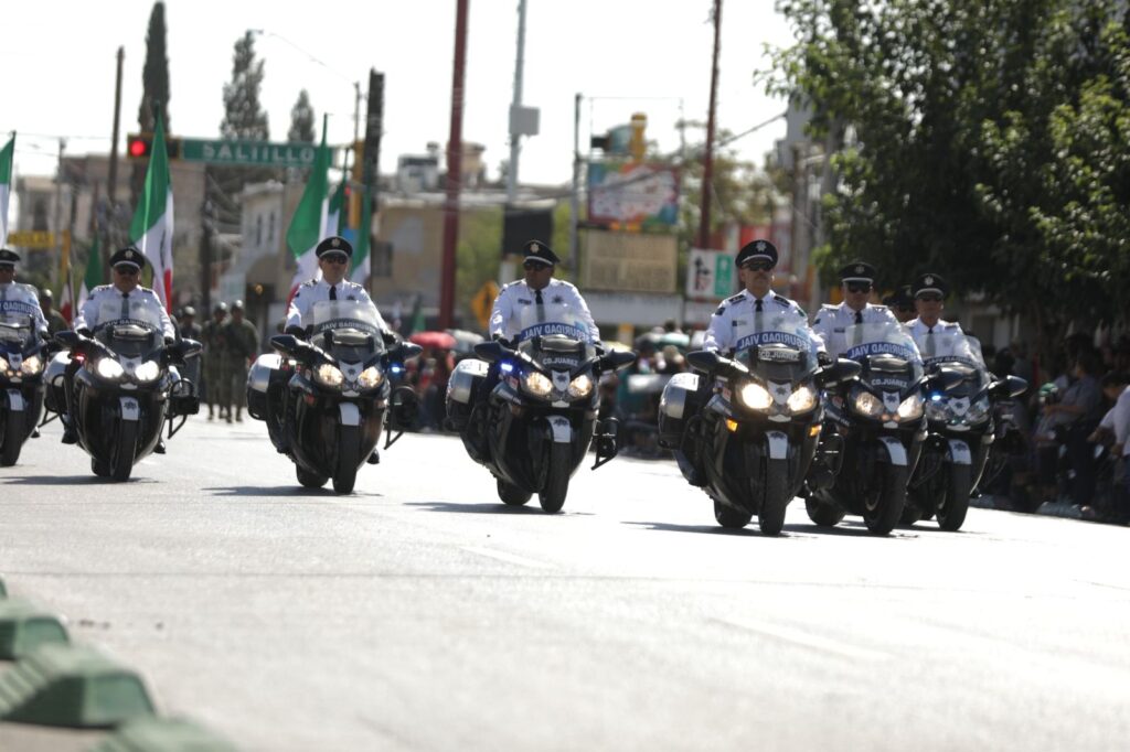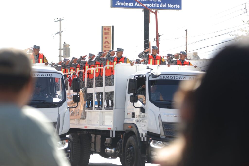 La parada cívica estuvo integrada por mil 860 personas, de las cuales, 955 pertenecen a las diferentes instituciones de seguridad pública y servicios de rescate, 275 son miembros del Ejército Mexicano y 488 de la Guardia Nacional.