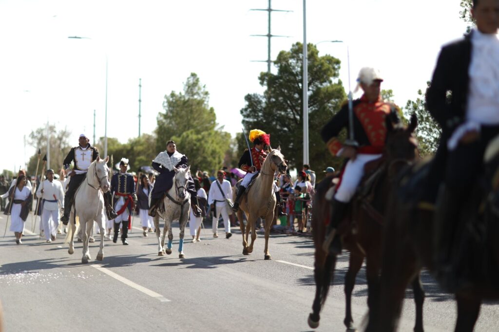 También desfilaron 80 elementos de las llamadas Defensas Rurales, 62 del Servicio Militar Nacional y 50 de la Asociación de Charros.
