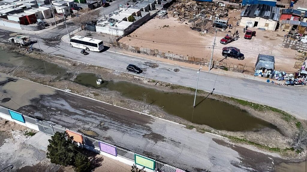 Desde el lunes pasado, trabajadores de la Junta Municipal de Agua y Saneamiento (JMAS) de Juárez laboraron en el mantenimiento y limpieza del sistema de drenaje del fraccionamiento Villas de Alcalá, afectado por brotes de aguas negras.