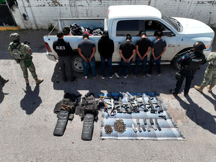 En una acción conjunta entre la Secretaría de Seguridad Pública del Estado (SSPE), la Agencia Estatal de Investigación (AEI) y la Secretaría de la Defensa Nacional, cinco personas fueron detenidas la tarde del sábado 20 de abril en el municipio de Guachochi por portación ilegal de armas de fuego, municiones y equipo táctico.