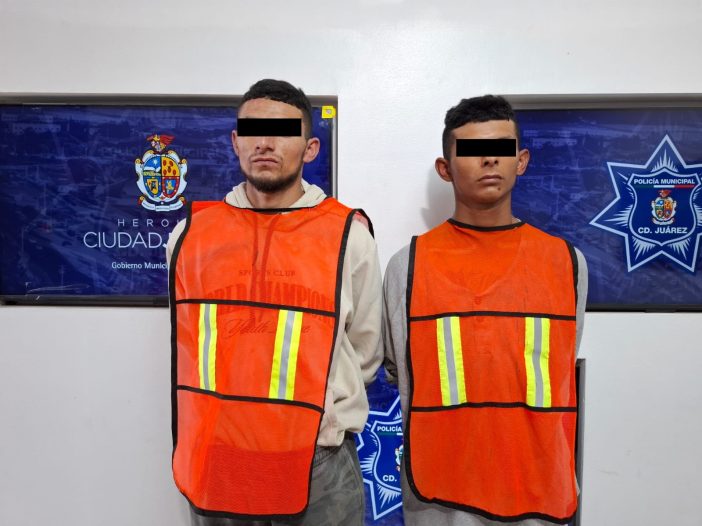 Elementos de la Secretaría de Seguridad Pública Municipal detuvieron a Cristhian Manuel I. M. y a Erik Jair I. M., ambos de 23 años, por su presunta responsabilidad en los delitos de homicidio y violación a la Ley Federal de Armas de Fuego y Explosivos.