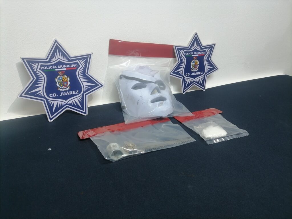 Un hombre que cubría su rostro con una máscara de plástico fue detenido por agentes municipales en el fraccionamiento Porto, luego de que se le asegurara un envoltorio con 21 gramos de cristal.