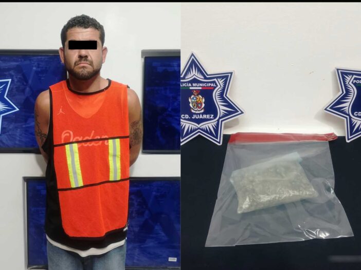 Motivo por el cual fue abordado y al realizarle una inspección preventiva le fue localizada entre sus prendas de vestir una bolsa de plástico con aproximadamente 43.2 gramos de marihuana, quedando bajo arresto.