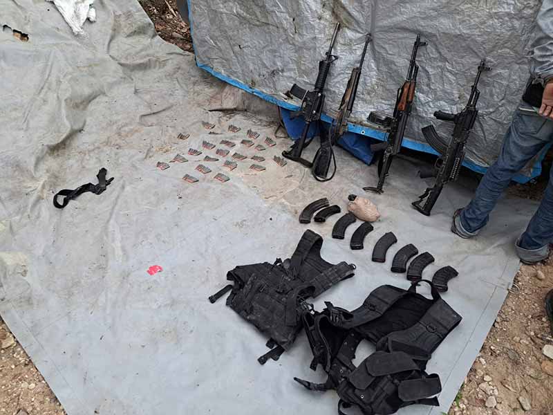 Al ver a los efectivos federales y estatales, el ahora detenido corrió hacia un bulto tapado con costales en donde guardaba las armas de fuego.