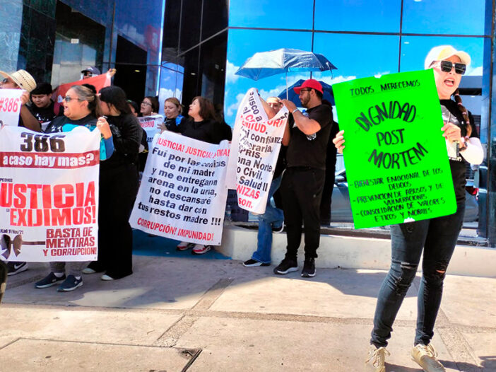 Integrantes del colectivo juarense ‘Justicia para nuestros deudos’, se trasladaron este día a la Ciudad de Chihuahua para entrevistarse con autoridades de la Comisión Estatal para la Protección contra Riesgos Sanitarios (Coespris) y de la Fiscalía General del Estado (FGE) para exigirles explicaciones de las causas que generaron la tragedia del crematorio Plenitud.
