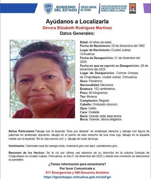 Devora Elizabeth Rodríguez Martínez tenía 43 años cuando desapareció.