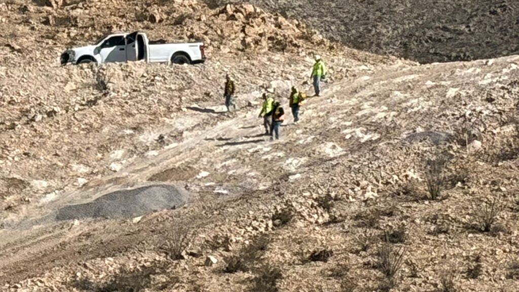 En la parte superior de un camino de terracería construido en la falda de una de las montañas, tres camionetas doble cabina estaban estacionadas. Más al oeste, una tanqueta militar con un faro encendido realizaba tareas de vigilancia.