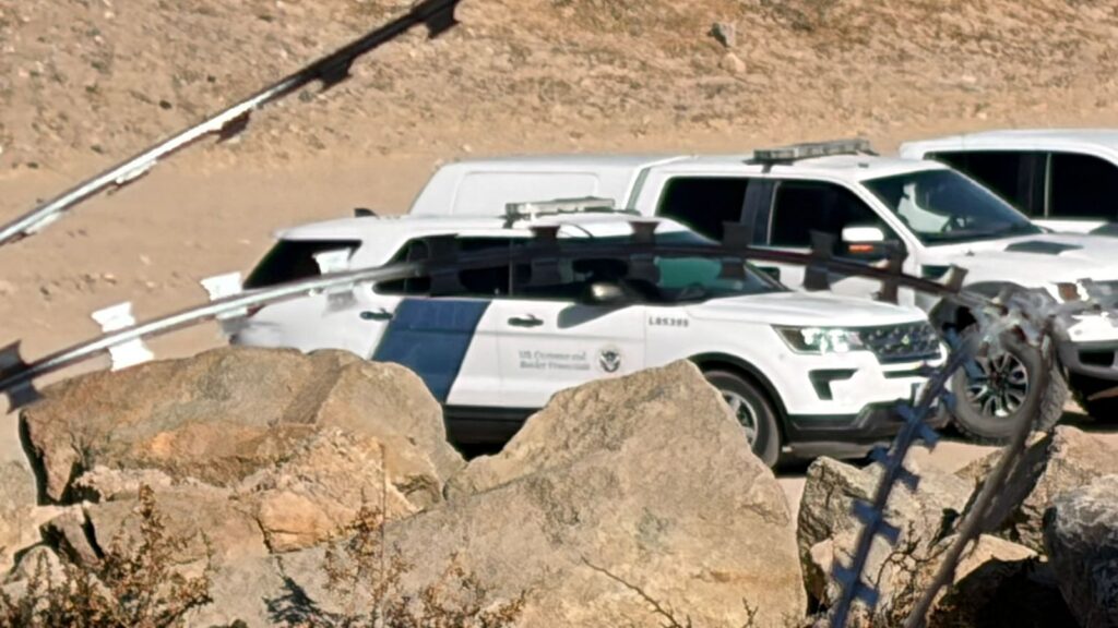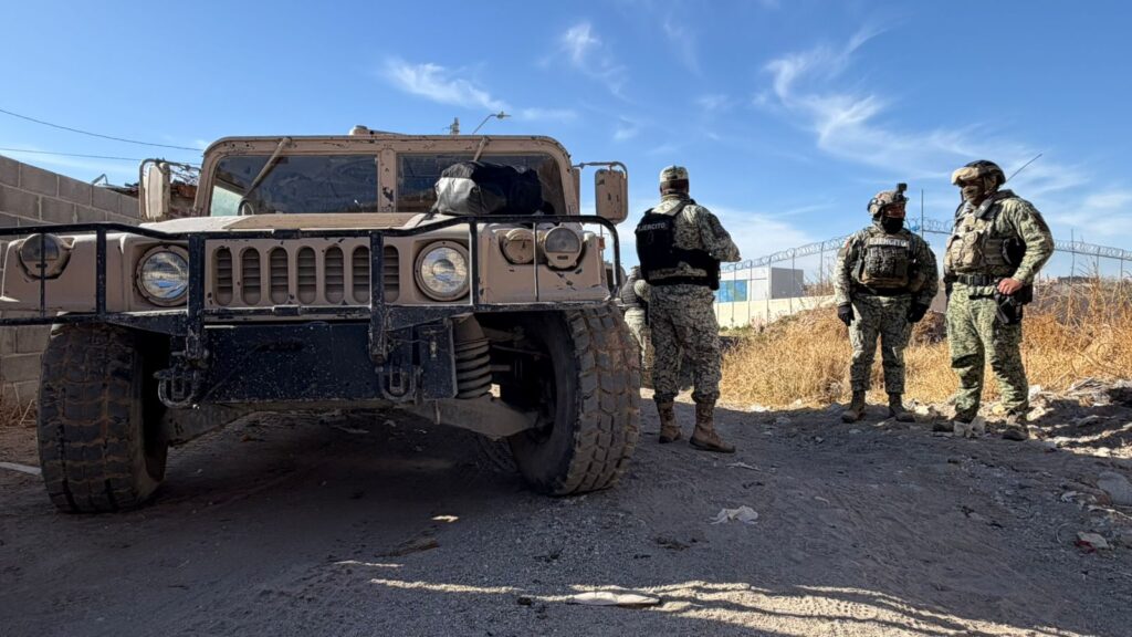 De este lado del muro, sobre la calle Sirenas, y la prolongación de Salmón, un reducido contingente militar, con vehículos Hummer del Ejército Mexicano y la Guardia Nacional, cuidaban que no hubiera personas cerca del muro, salvo las y los reporteros que habían llegado para hacer la cobertura.