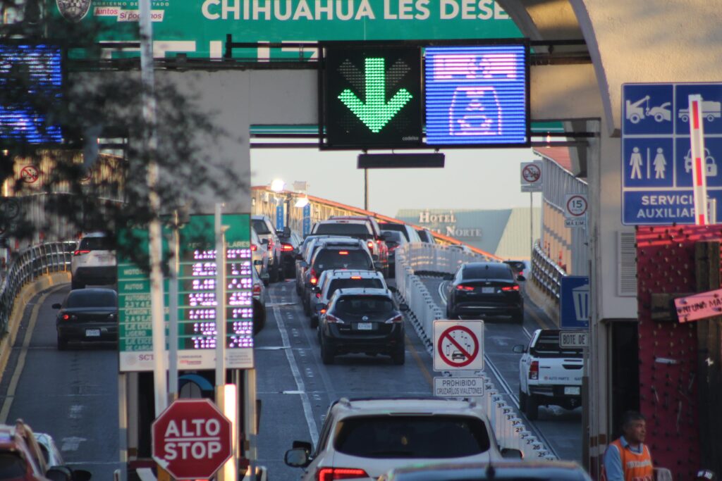 En el cruce internacional Paso del Norte, ubicado en la avenida Juárez, en el Centro, la fila de vehículos se extiende hasta la mitad del puente, con un tiempo de espera aproximado de 50 minutos.