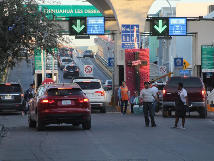 En el cruce internacional Paso del Norte, ubicado en la avenida Juárez, en el Centro, la fila de vehículos se extiende hasta la mitad del puente, con un tiempo de espera aproximado de 50 minutos.