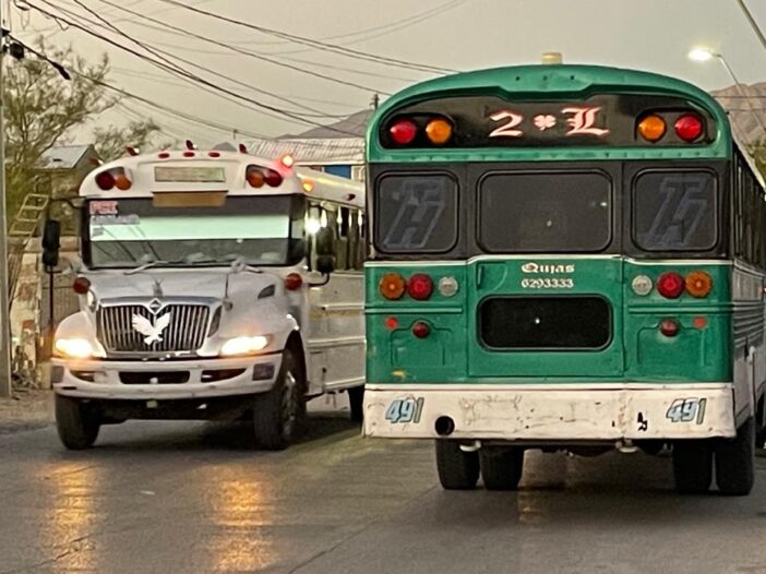 Para llegar a su domicilio, el hombre debió bajar al centro a bordo de un bus de la mencionada ruta Poniente-Sur, y ahí tomó un tercer autobús, ahora de la Línea 3 B, la de los conocidos camiones color rosa. Es un servicio apenas eficiente, pero necesario. Todas las personas que viven en este sector de la frontera lo saben.