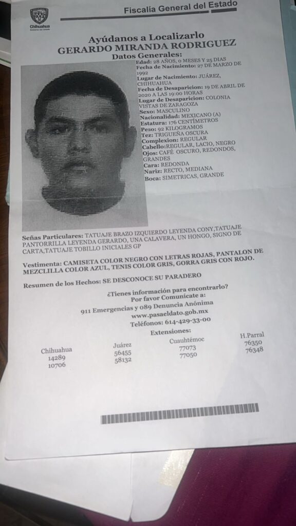 La ficha de Fiscalía decía que se le había visto por última vez a las 19:00 horas del 19 de abril, vistiendo un pantalón de mezclilla y una camiseta negra.