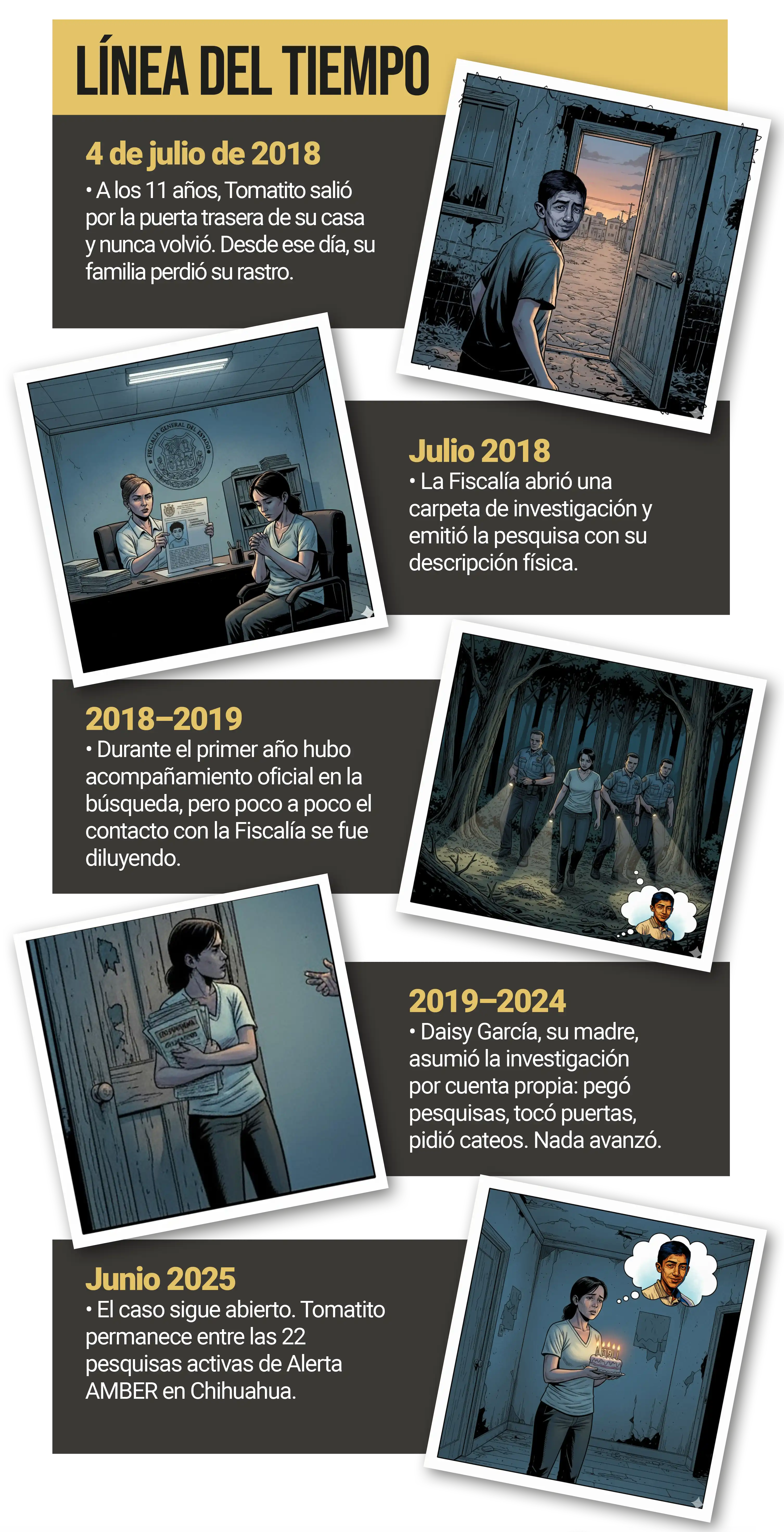 Pero el tiempo transcurre y, en casos como el de Tomatito y los otros cientos de menores desaparecidos, no queda más que esperar a pegar pesquisas o a las búsquedas que decida la autoridad.