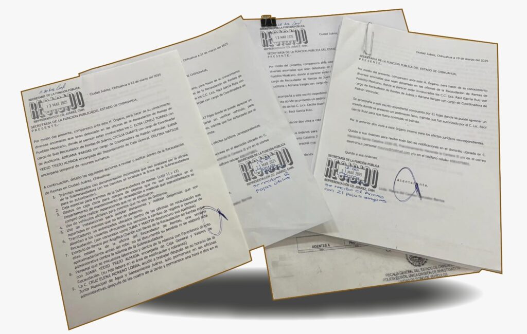 Ante la Función Pública se presentó el paquete de denuncias por presuntos actos irregulares que involucran al recaudador de Rentas en Ciudad Juárez, Raúl García Ruiz.