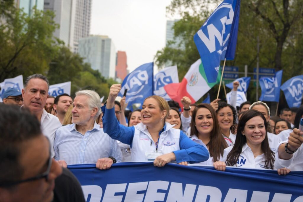 Maru estuvo al frente del contingente que marchó el sábado desde el Monumento a la Revolución, junto al presidente nacional, Jorge Romero y liderazgos como Santiago Creel y las gobernadoras de Aguascalientes y Guanajuato, Teresa Jiménez y Libia Denisse García, respectivamente.