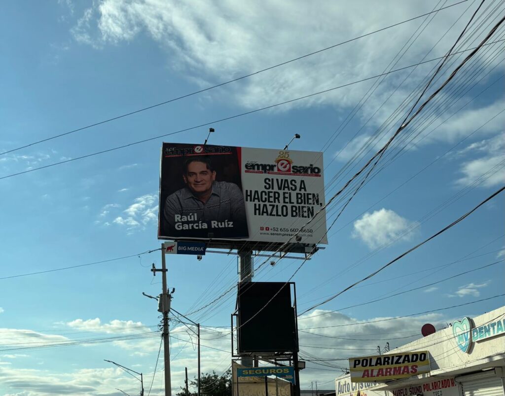 En esta ocasión sí hay entrevista en la revista Ser Empresario, pero ya sabemos que no es realmente el objetivo de ese tipo de anuncios espectaculares promocionar un contenido, sino posicionar la imagen y el nombre del personaje para algún proyecto político.