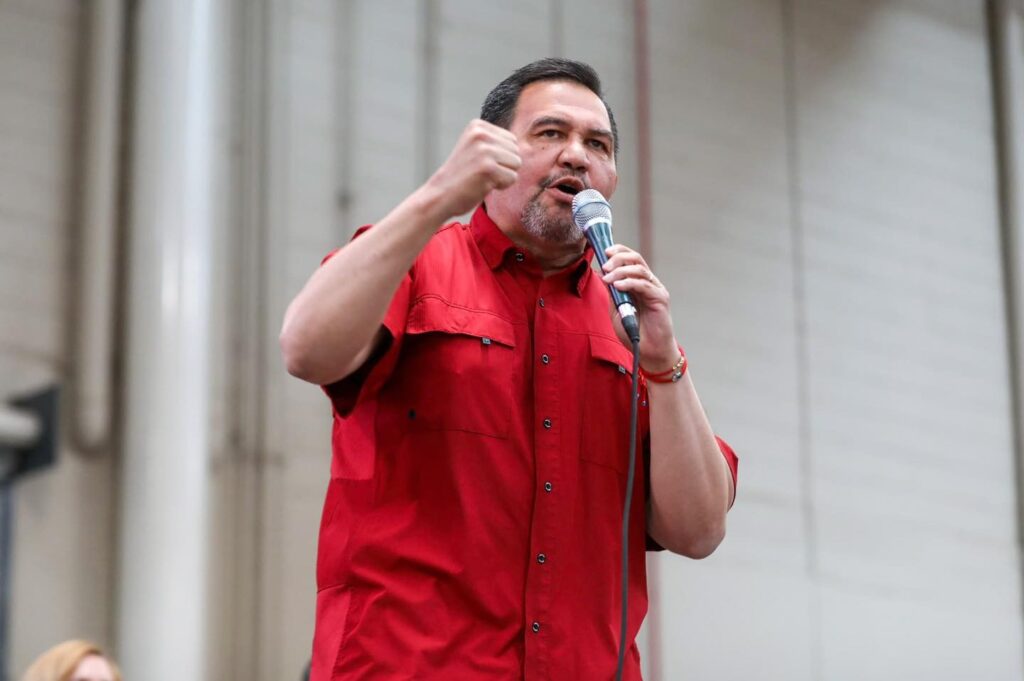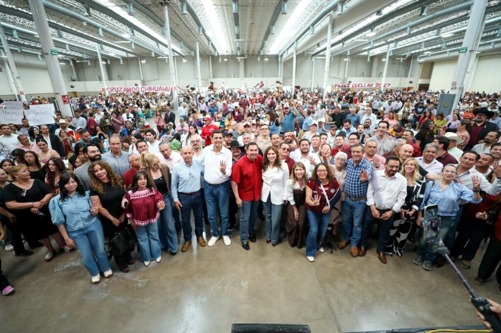 De todos hubo operación política para llenar el recinto de ExpoChihuahua, donde se desplegaron cartulinas y grandes mantas con leyendas como “Cruzando Chihuahua” y “Pérez Cuéllar 2027”.
