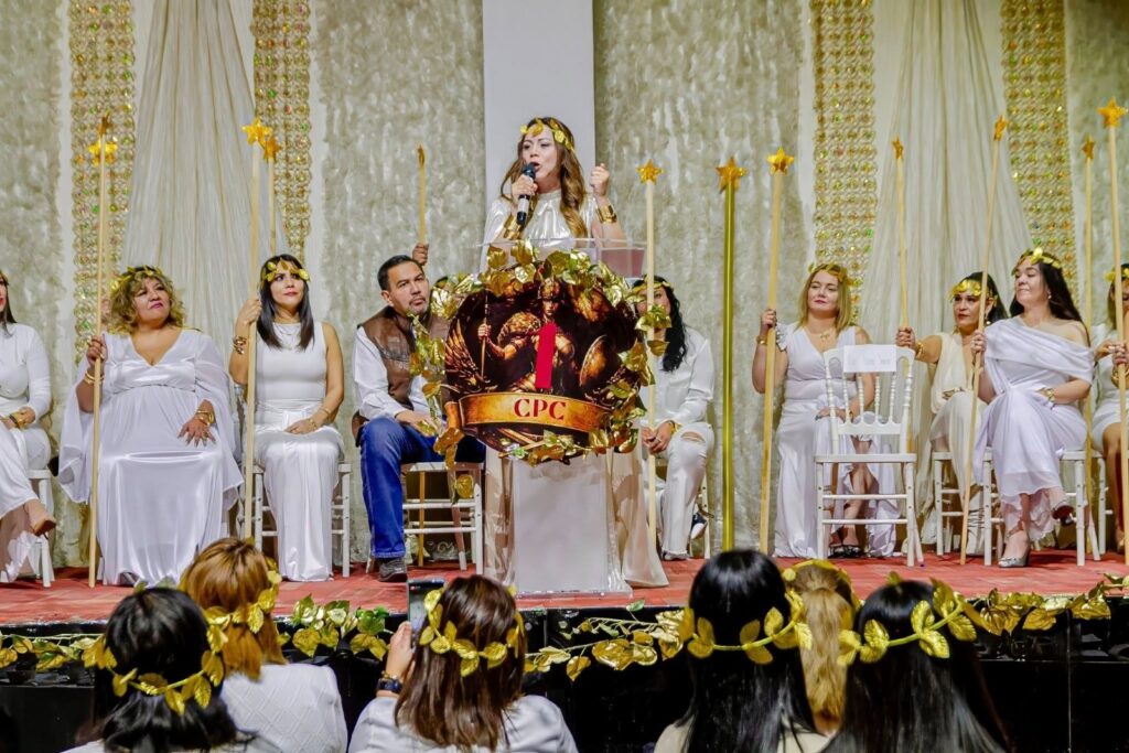 La agrupación también difundió el evento en su propio perfil. Las imágenes mostraron a un Cruz Pérez Cuéllar rodeado únicamente de mujeres, todas portando una especie de lanza – bastón de mando– varita mágica simbólica. El mensaje visual se explicó solo.