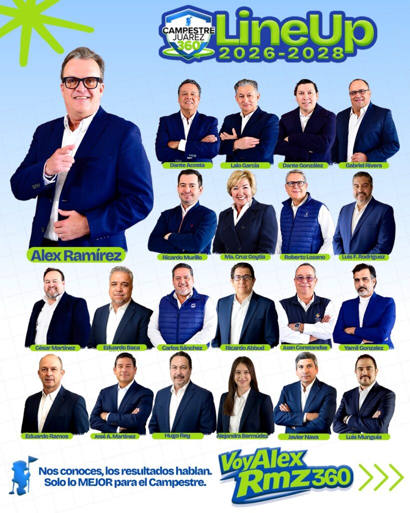 Pues ya salió también la planilla Campestre 360, encabezada por Alejandro Ramírez Ruiz. Desde luego, será clave el peso de los equipos para definir si es el otorrinolaringólogo o el dueño de Ópticas Franklin quien se quede al frente del club, que opera como Asociación Civil, durante los próximos dos años.