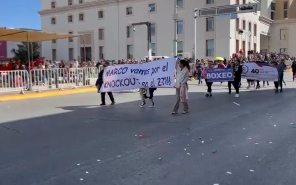 Pasaban los contingentes frente al templete principal ubicada al lado de la Plaza del Ángel, cuando tocó el turno al Gimnasio Santa Rosa, una escuela de boxeo.