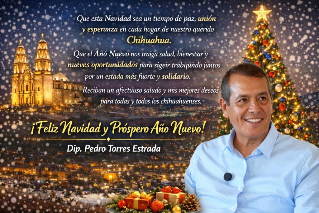 ¡En la Torre! —dirían en el barrio— y no solo por el encabezado de esta columna, sino por el cúmulo de errores que se le fueron al diputado juarense Pedro Torres Estrada, periodista de origen y político en funciones, en la tarjeta navideña que compartió en sus redes sociales para cerrar el año.