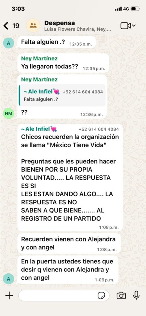 En uno de los mensajes de texto que se distribuyeron entre grupos sociales se puede leer con toda claridad la indicación: ni mencionen al partido México Tiene Vida. Nada más hay que ver el correíto que se mandó por WhatsApp para calarle la calidad a la melcocha: