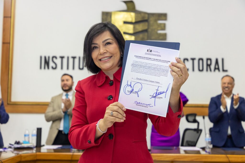 A final de cuentas, las cuatro personas más sonrientes con sus constancias ayer fueron Marcela Herrera Sandoval (121 mil 835 votos), Yamil Athie Gómez (110 mil 248), Claudia Cristina Campos Núñez (108 mil 043) y Gerardo Javier Acosta Barrera (107 mil 331).