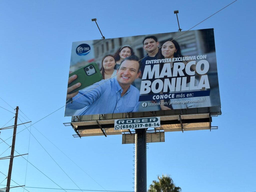 En noviembre del 2024 aparecieron los primeros anuncios espectaculares promocionando una entrevista en la revista PRO Chihuahua. Para julio de 2025 se renovó la campaña con otra imagen para “En Primera Persona” y nuevamente se cambió la campaña para el mes de octubre de este año, cuando se anunció, otra vez, una entrevista exclusiva con Marco Bonilla.