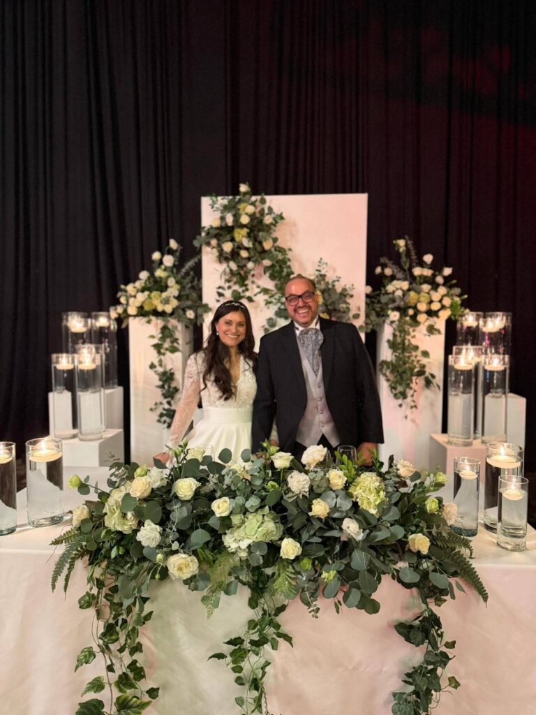 La ceremonia se realizó en la parroquia de Nuestra Señora del Rosario, en la colonia Del Rosario de la capital del estado; la recepción, una comida bastante cerrada, casi para la pura familia, en el Salón Verona.